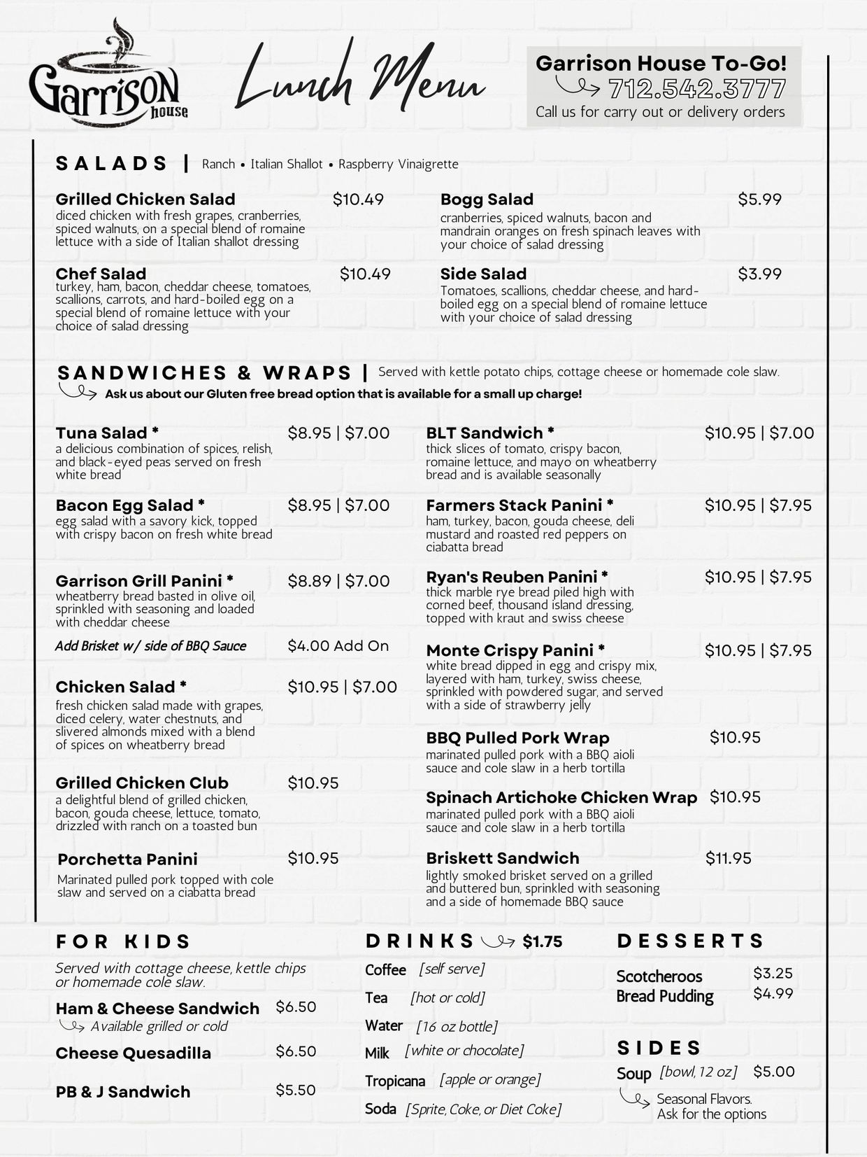 Garrison House Menus (pdf)